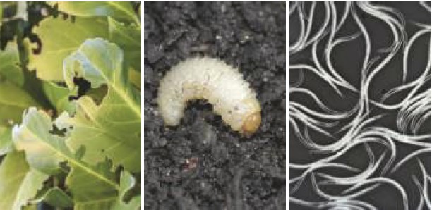 - Gărgărița coletului (Otiorhynchus sulcatus) este eficient împotriva larvelor și pupelor și, prin urmare, trebuie aplicat în aprilie/mai și din august până în octombrie. Aplicați 500.000 de 2 nematozi/ m pe sol, 10.000 de nematozi pe litru de substrat pentru culturile hidroponice și 25.000 de nematozi pe plantă la căpșuni.